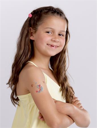 Virág tetoválás csinos kislányoknak. Lepje meg gyermekeit nagyszerű tetoválásokkal, gyermekei imádni fogják a gyönyörű virág tetoválást. Tökéletes ajándék, vagy apró meglepetés, amivel hazaérkezik, születésnapi partikra vagy egyszerűen arra, hogy a gyerekek játszanak.
