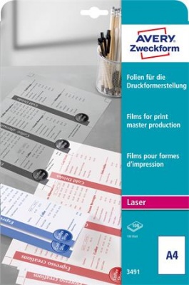 Fólia, matt, nyomólemezhez, A4, lézernyomtatóba, AVERY ZWECKFORM